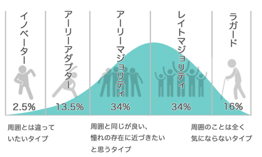 その前提で、イノベーター層に憧れる形で、アーリーアダプター層がフォロワーとなるように雰囲気作りを行う