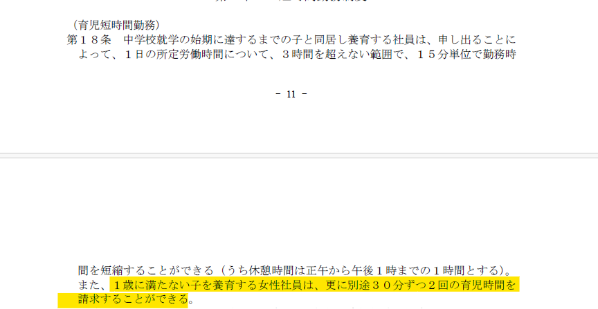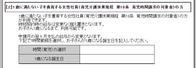育児介護休業規程第18条にある育児時間請求の対象者向けの時短契約となります。