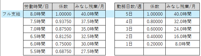 7.5時間(固定残業:37.5時間)、7時間(固定残業:35時間)、6.5時間(固定残業:32.5時間)、6時間(固定残業:30時間)の時短契約から選択できます。各係数を利用して給与と固定残業時間が変動します。