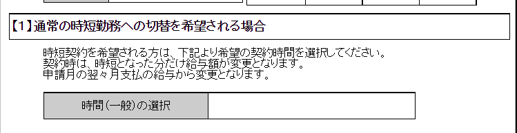 【1】通常の時短勤務への切替を希望される場合