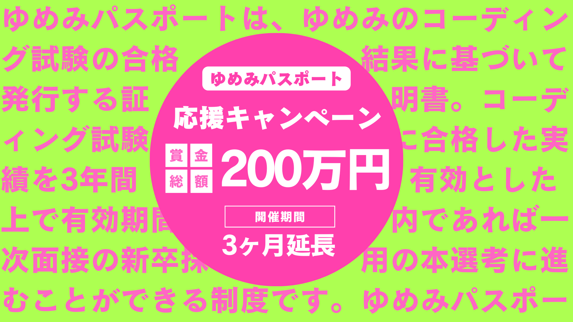 など就活を迎える26卒に限らず、全学年の学生の方に対して、実施している「ゆめみパスポート」について、キャンペーンとして認定ランクに応じた賞金を用意いたします