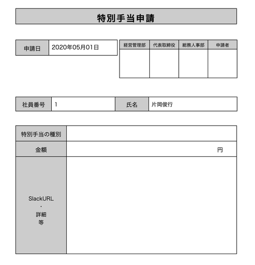 稟議関連>特別手当申請