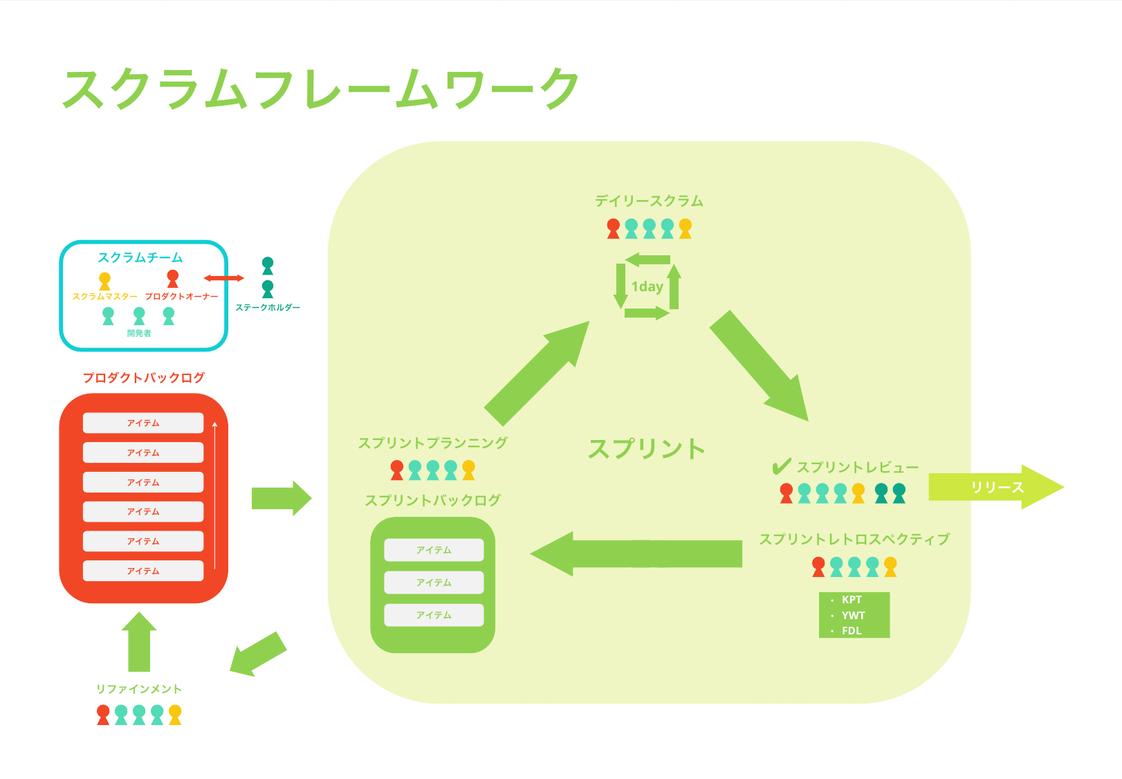スクラムとは、この「アジャイルソフトウェア開発宣言」という概念の基となった実際の開発手法の一つとなります。