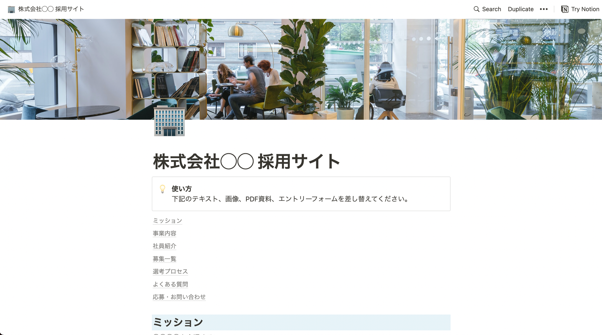 ※ Notion 公式のテンプレートの1つです