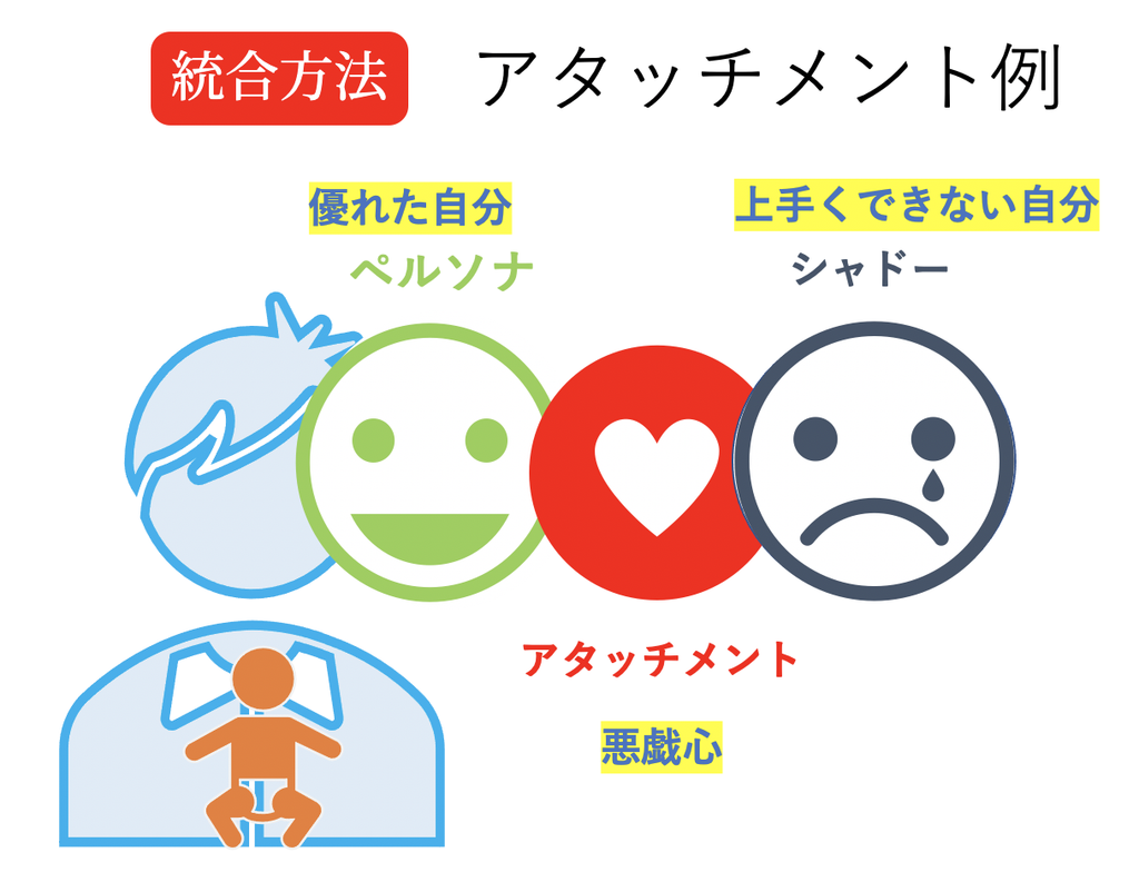 このアタッチメントで、ペルソナ(優れた自分)とシャドー(上手くできない自分)の2つの仮面をくっつけます。