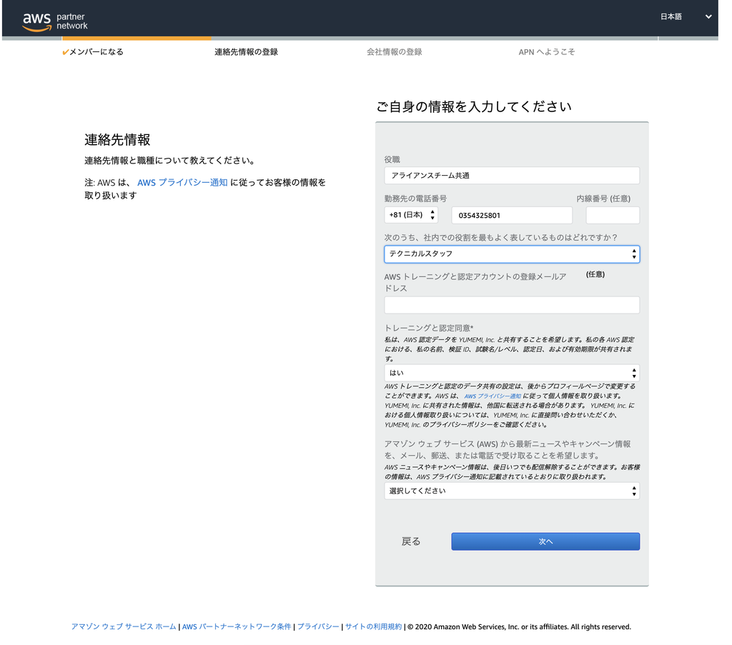 4. 「私のAWS認知をYUMEMI, inc. と共有することに同意します。」を「はい」に変更してSubmit
