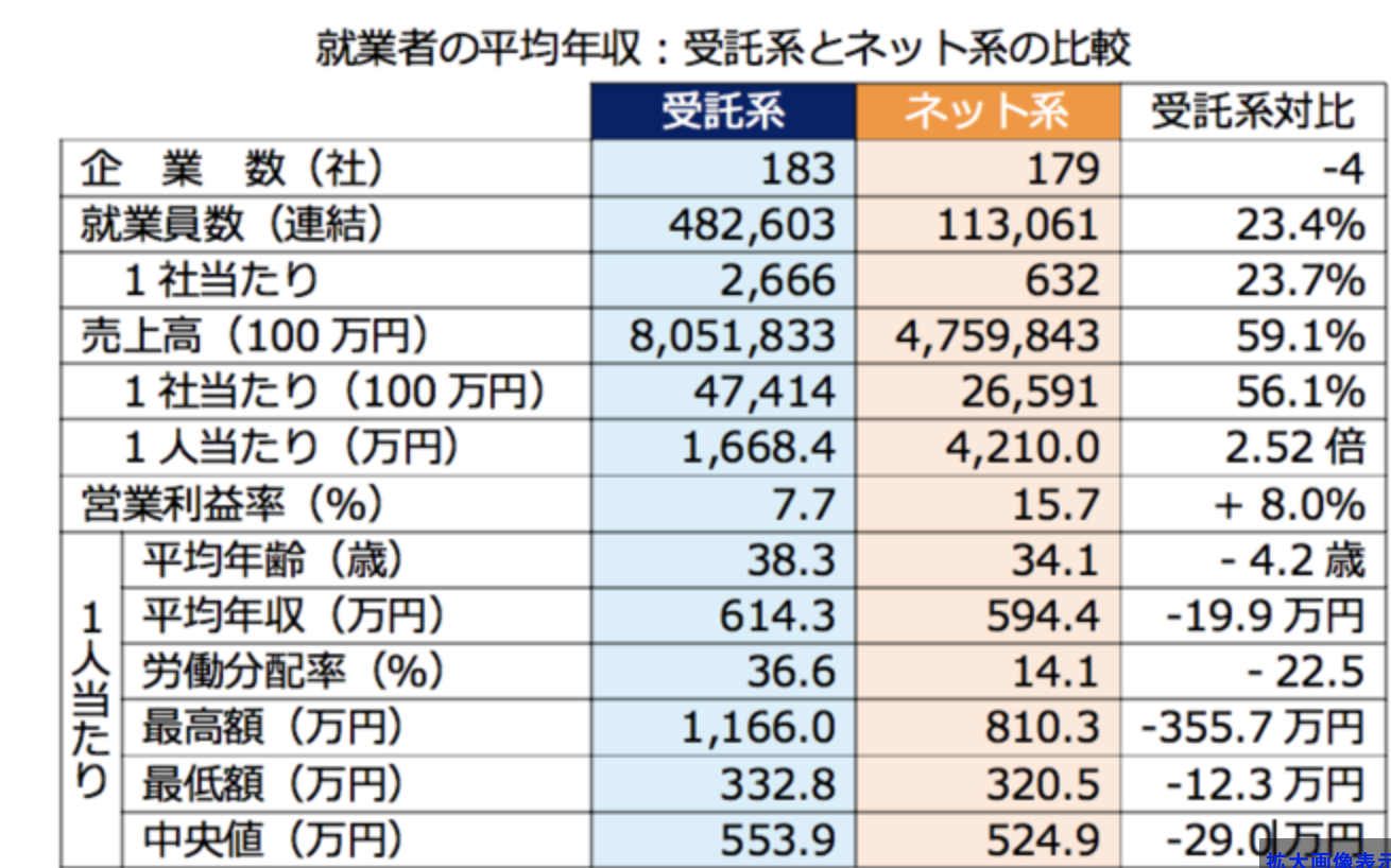 WEB系(平均年齢35歳)・SIer系(平均年齢40歳)の平均年齢の違いが、100万円の年収差を生み出している可能性がある