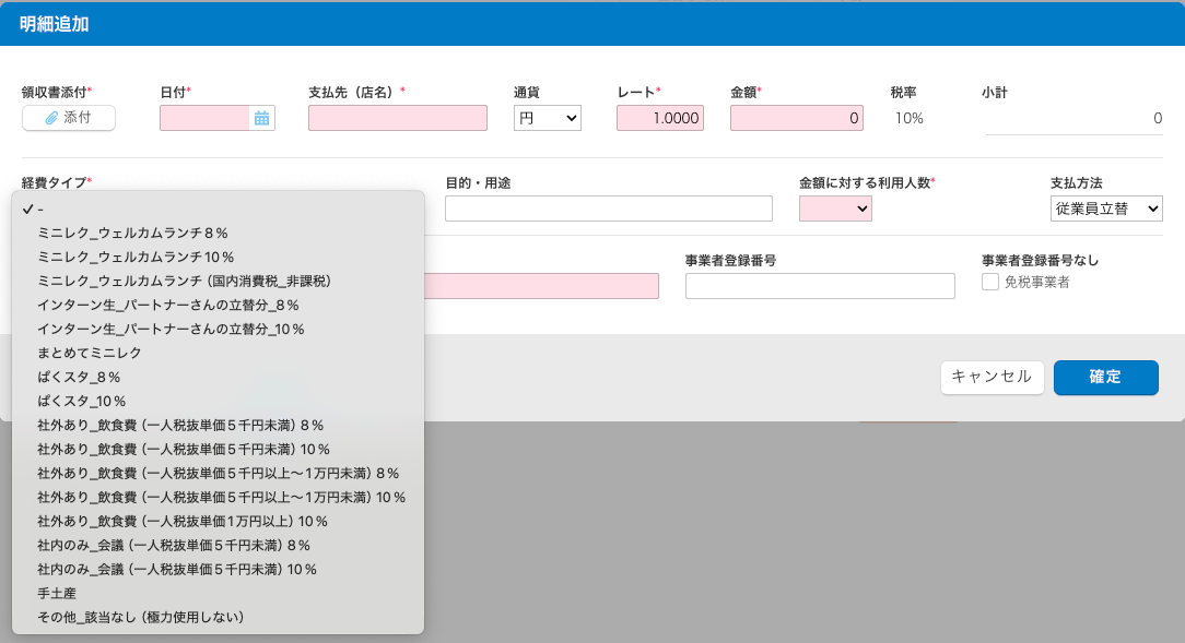 ミニレクに参加したインターン生、パートナーさんの経費をゆめみメンバーが代理で支払った場合に利用