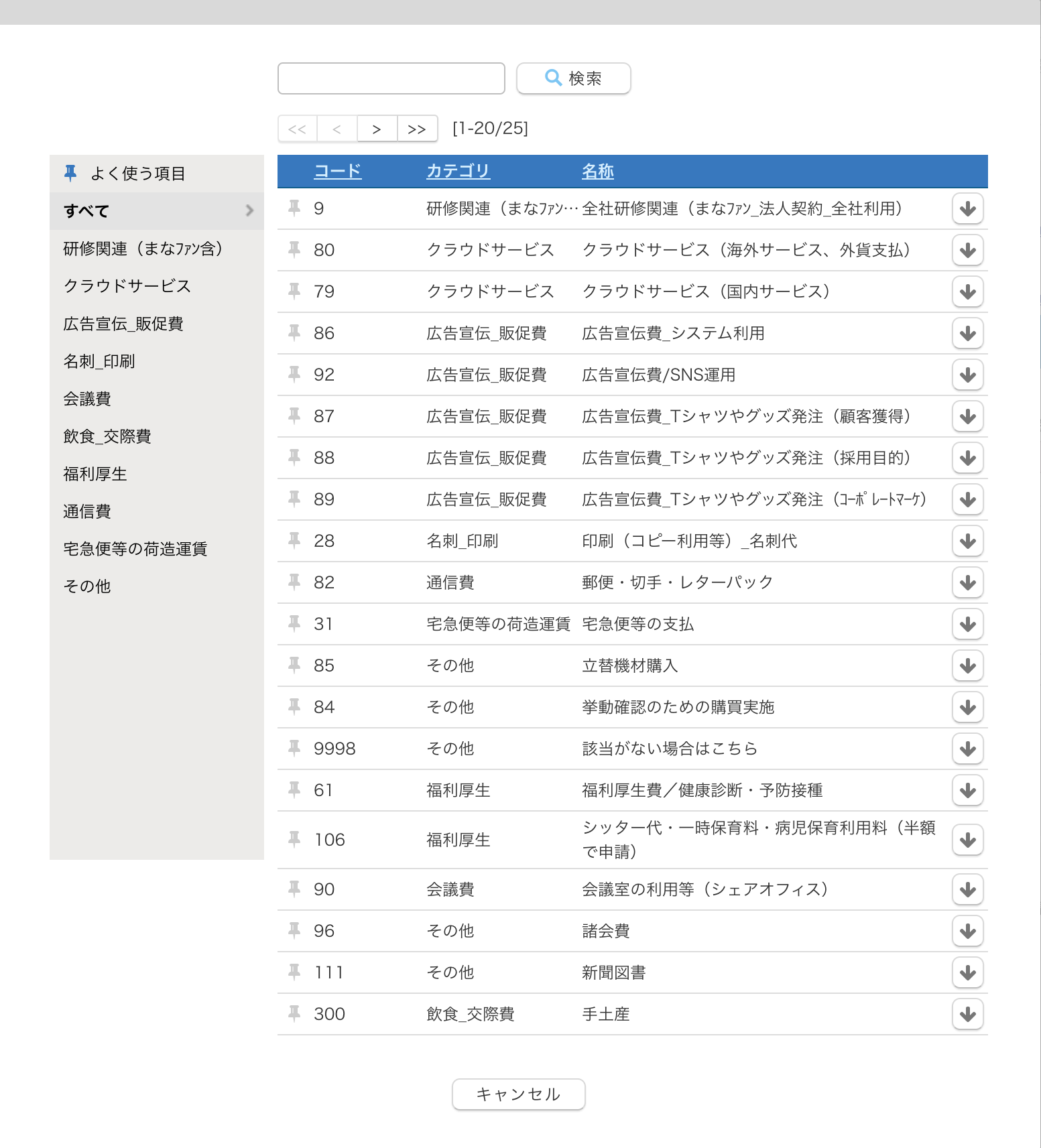 それぞれのカテゴリにあった経費タイプが置かれている(オレンジ)
