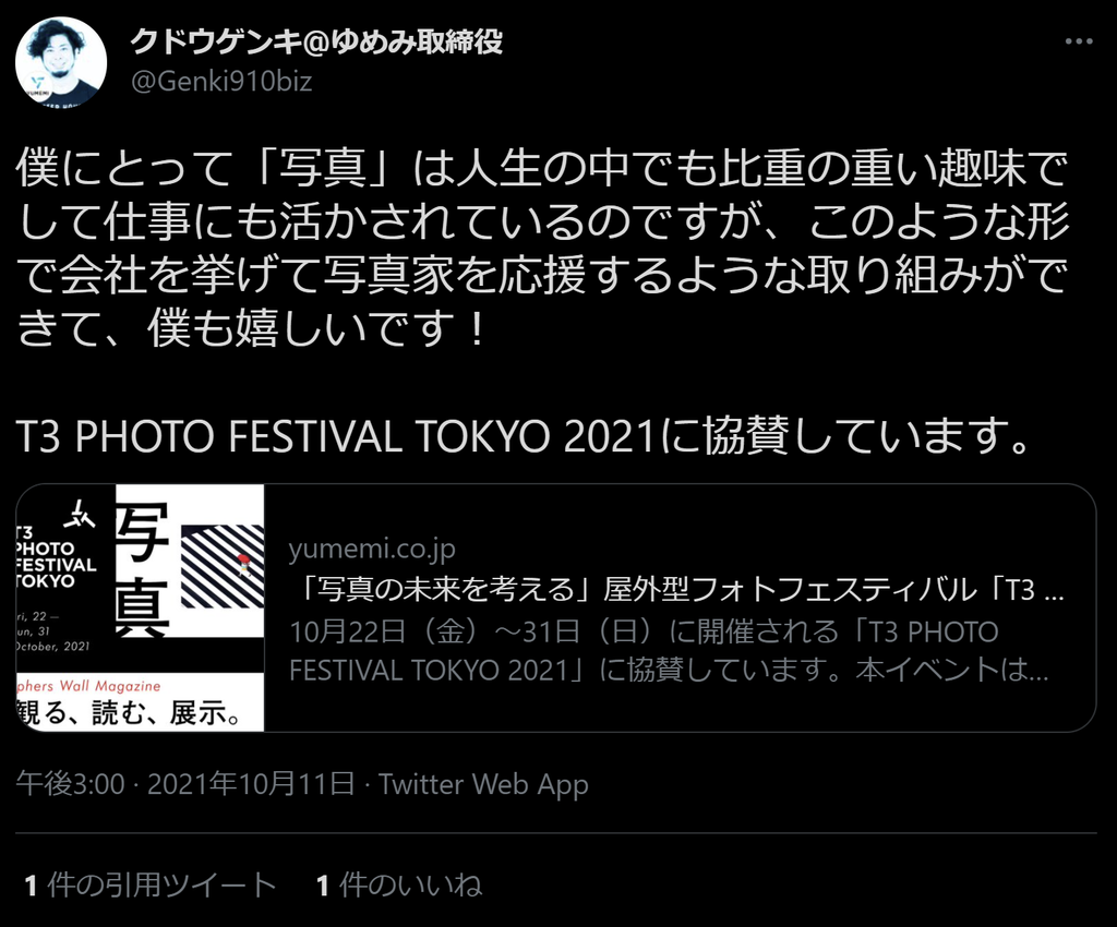 「働く意味を問い直し、組織のひずみを無くす」というゆめみのパーパス(存在意義・目的)に基づいて自分の意見を語る行為(ナラティブアプローチ)を個人SNSアカウントで発信