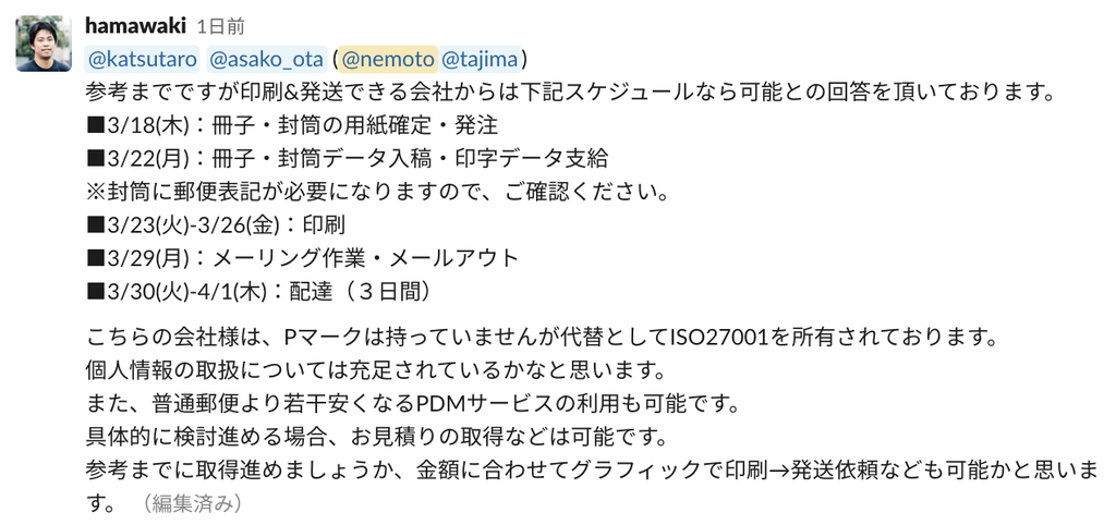 ■3/29(月):メーリング作業・メールアウト