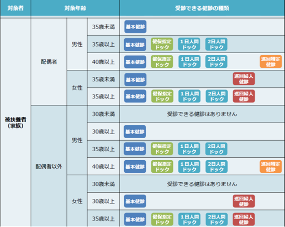 被扶養者の方向け健診一覧
