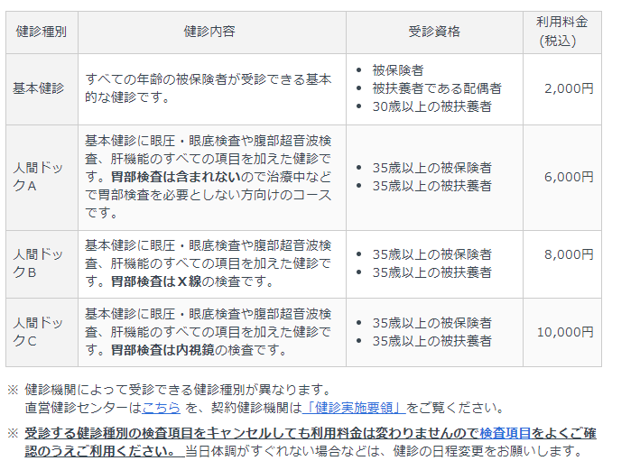 2024.04.03:ざっくり30歳未満は基本健診、30歳以上は 人間ドック(A、B、C) と誤った情報を載せていましたが、