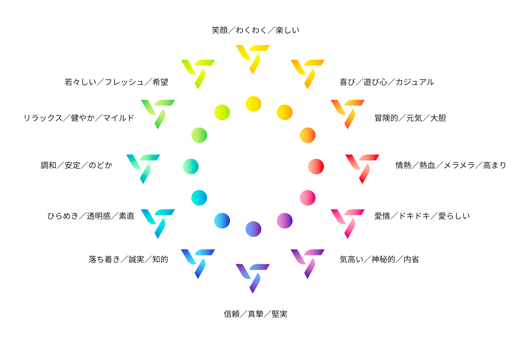 色を選ぶ際の要素として、それぞれのカラーから想起されるキーワードを割り当てています。