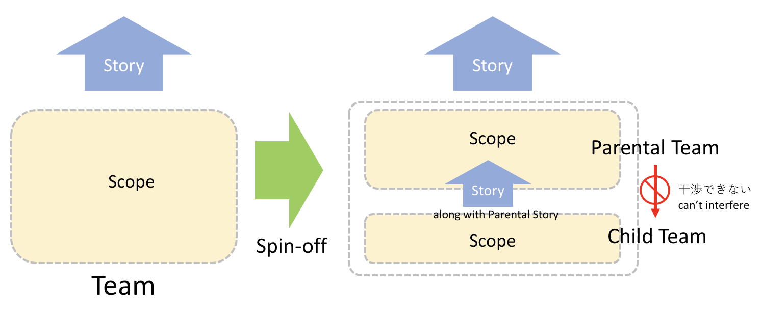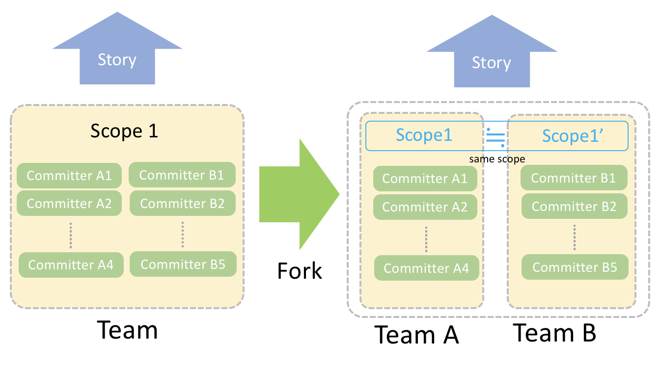 チームの一部のスコープを特定のコミッター達に任せる事でスコープ分担を行えるようにする。元のチームを「親チーム」と呼び、分割されてできた新しいチームを「子チーム」と呼ぶ