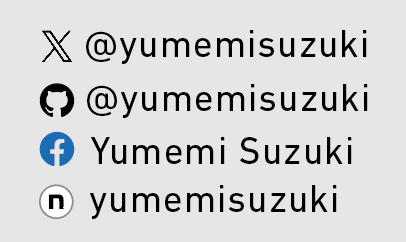 例:X / GitHub / Facebook / note はアイコンあり、その他はURLです
