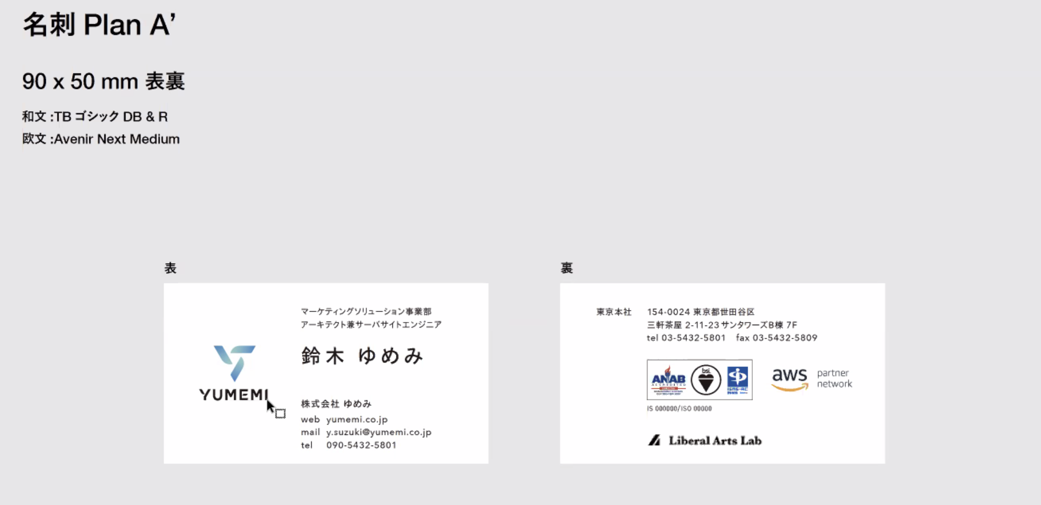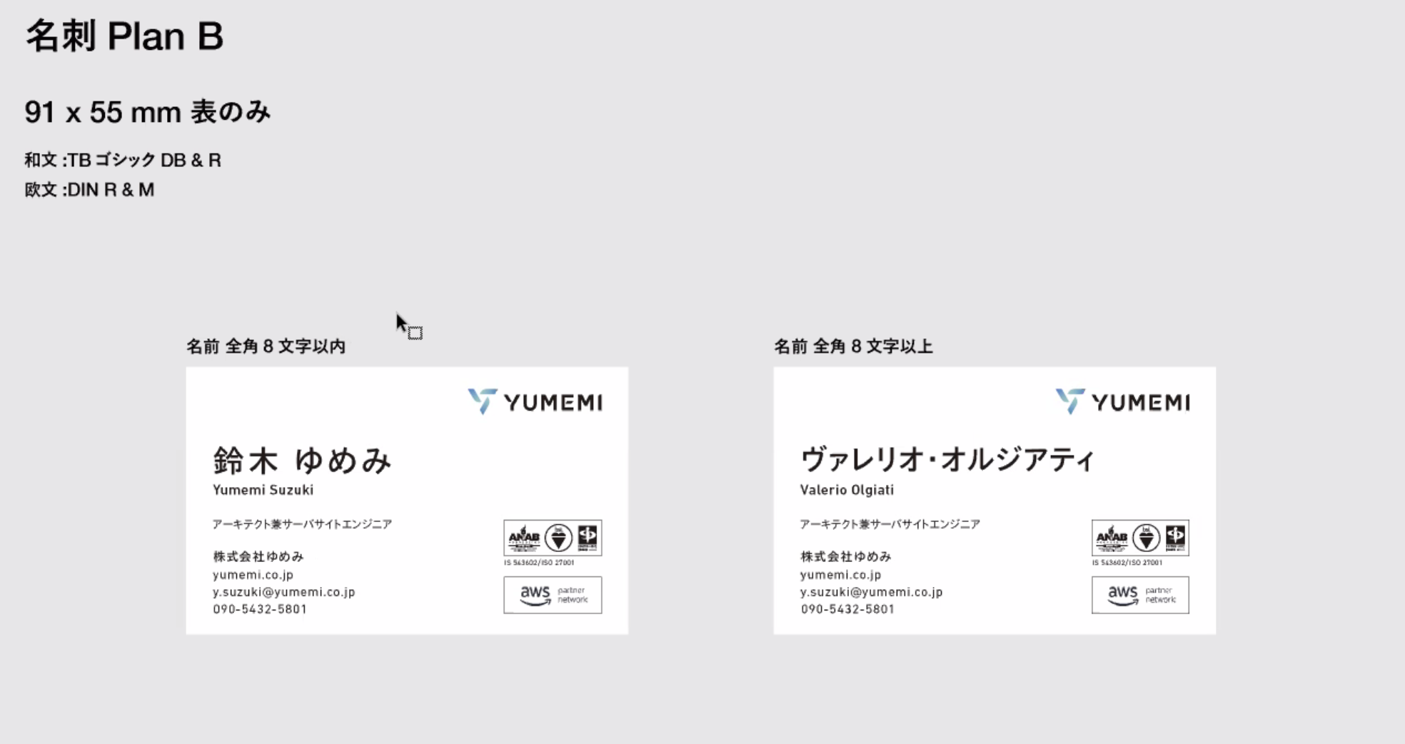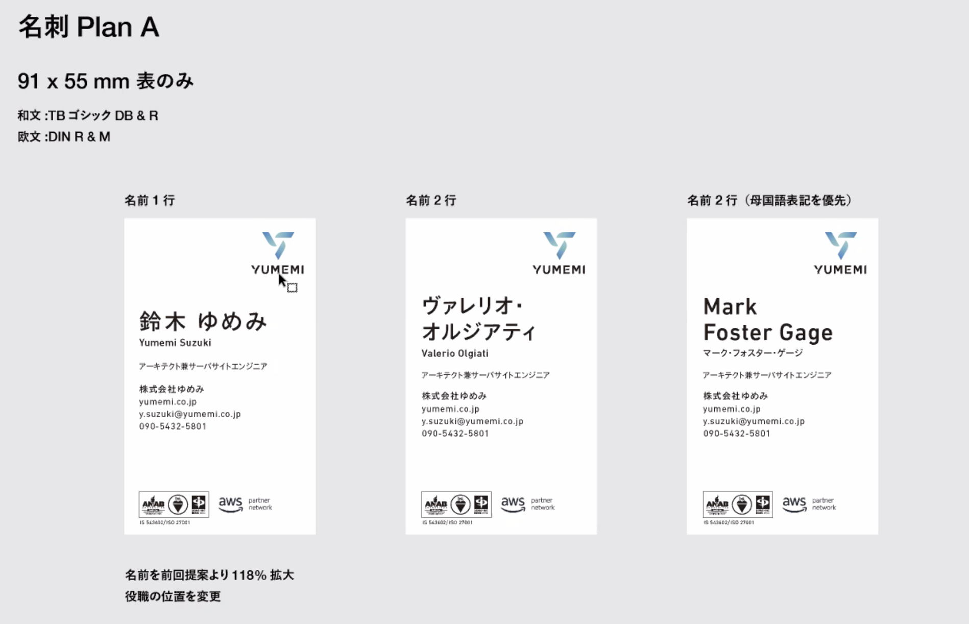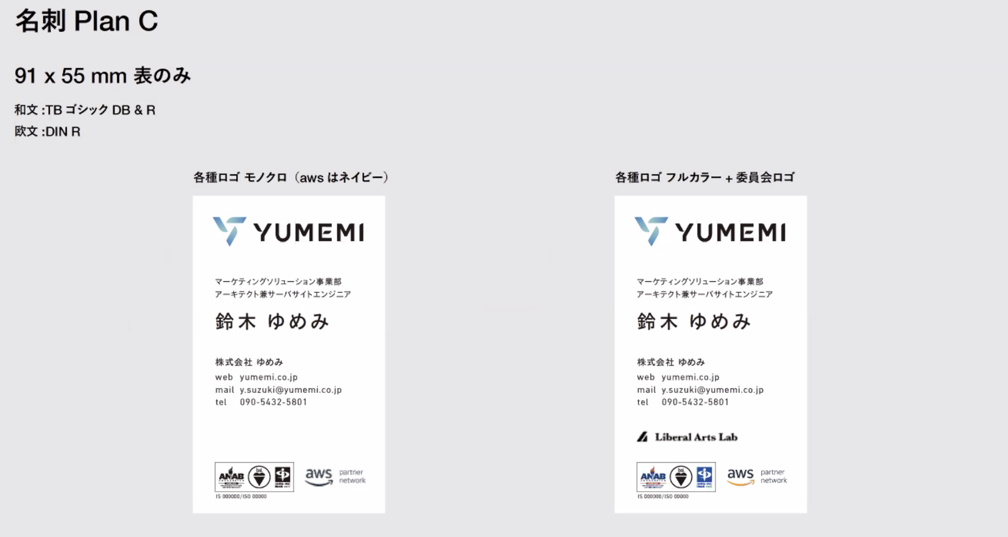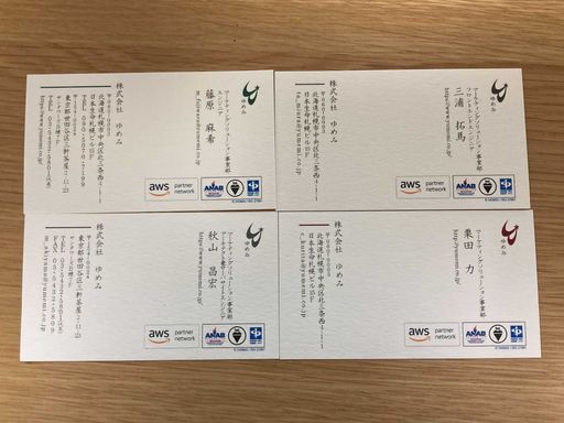 社名ロゴは小さくても良い→名刺交換の場ではすでにゆめみの人間ということが認知されている