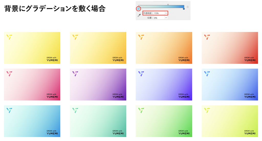 注意)色背景にグラデアイコンの使用を今レギュレーションで禁止している