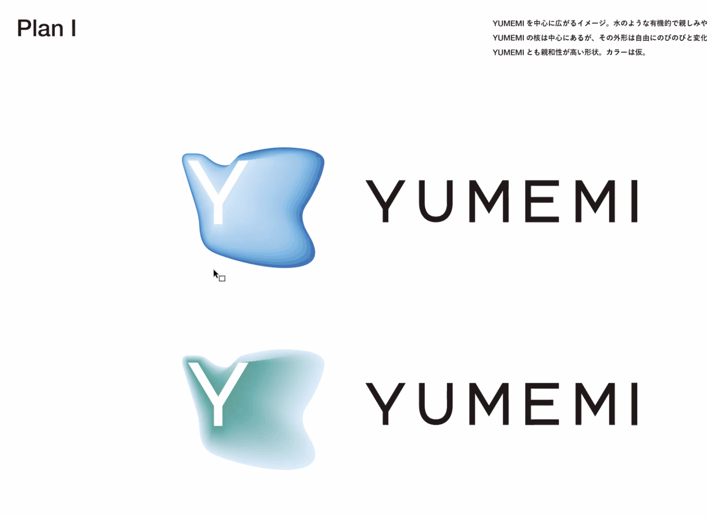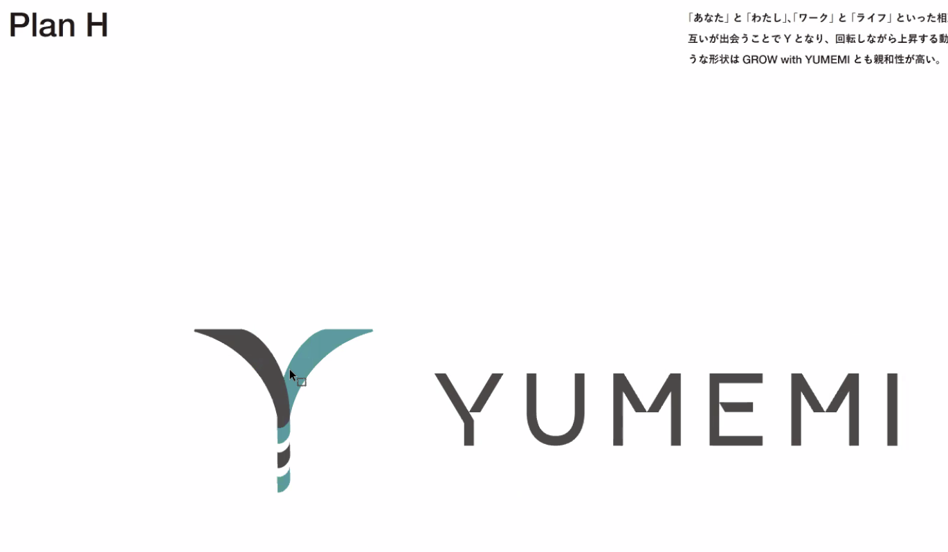 「Y」が「U」より小さく見えた→孤を中心から下げた